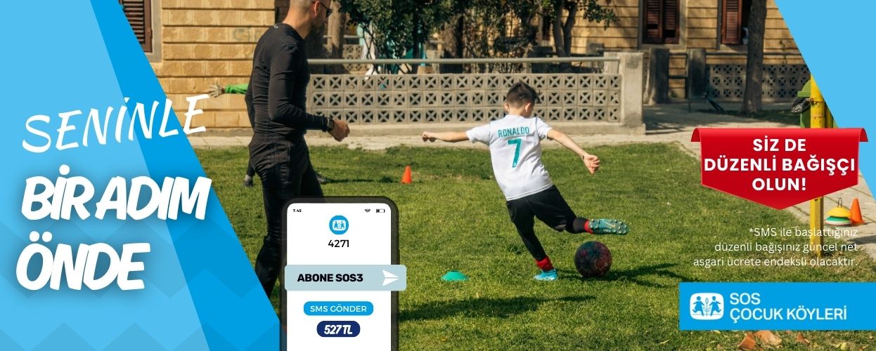 SOS Çocukköyü Derneği’ne düzenli bağış yaparak çocukların hayatlarında bir fark yaratabilirsiniz. Bağışınız sayesinde bir çocuğun çocukluk döneminden yetişkinliğine kadar ona destekte bulunmuş olursunuz.